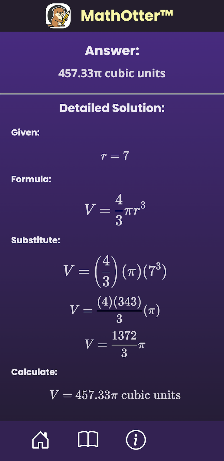 When you complete a practice problem, you can check the answer. If you need help, the "i" icon shows how to solve the problem type.